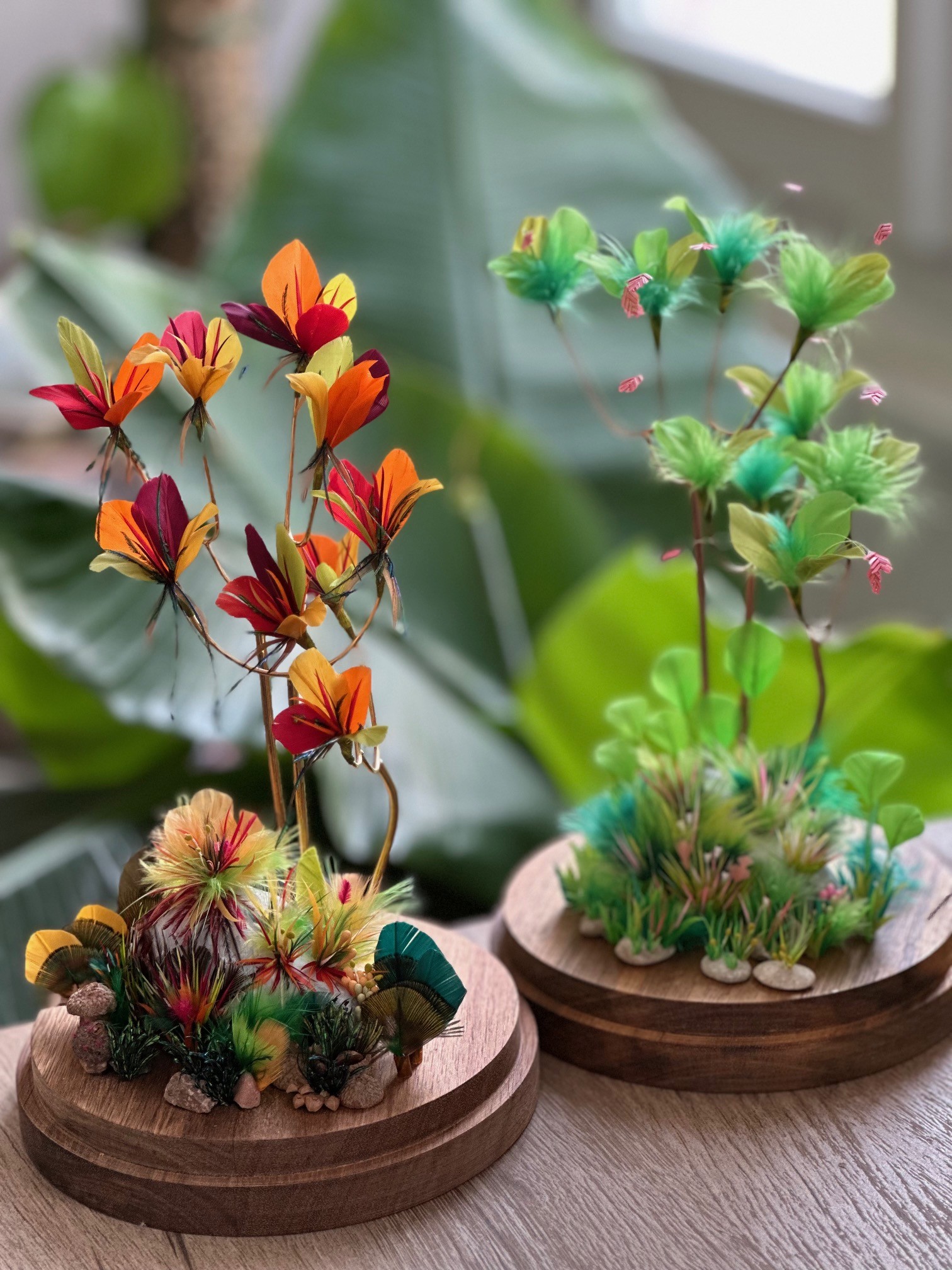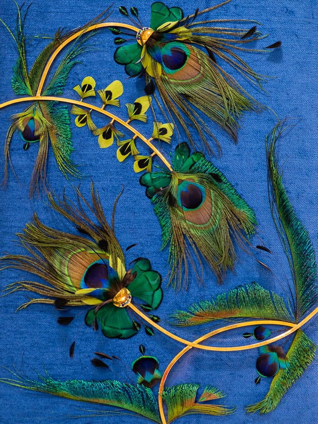 Le mariage du savoir-faire de bijoutière et de plumassière donne naissance à des bijoux et objets de décoration raffinés et contemporains