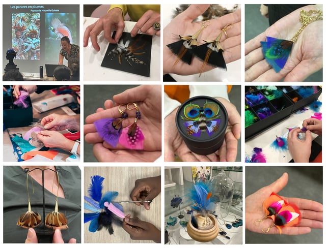 Vous êtes une entreprise ou une institution, vous souhaitez faire bénéficier vos collaborateurs ou clients privilégiés d'une expérience artisanale d'exception sous le maitre mot de la créativité ? L'atelier peut être précédé d'une conférence sur l'histoire des plumes car il y a beaucoup à raconter et ... à montrer ! Intervenante expérimentée dans le milieu professionnel, je suis intervenue auprès de Mercedes, Van Cleef & Arpels, le Musée de l'Homme, Axa Climate, Foire de Paris, Maïf social Club, la résidence seniors à Puteaux, l'institut de formation et de perfectionnement aux métiers de Nanterre ou encore le collège de Sèvres ... Dans tous les cas, je conçois votre atelier sur mesure, selon votre cahier des charges et je me déplace dans vos locaux en Occitanie.